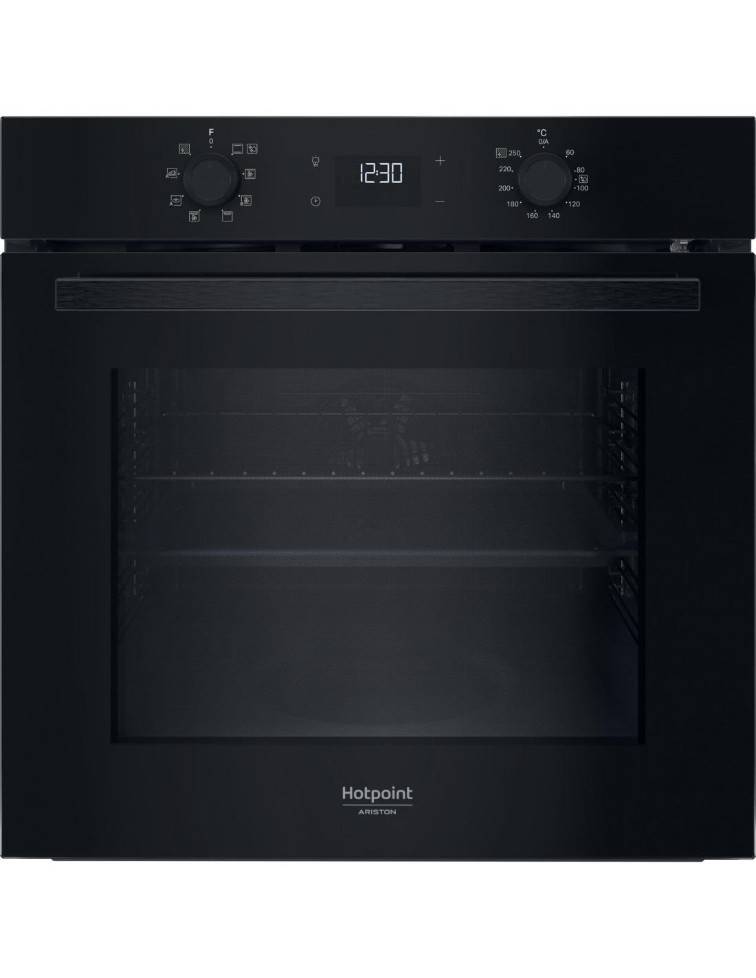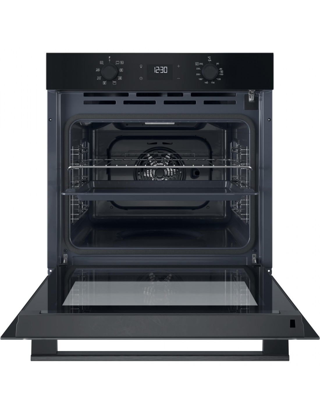 Four pyrolyse + hydrolyse, verre noir, chaleur tournante, boutons manettes, 71L, 1 grille, 1 lèchefrite, classe A++, design RETAIL