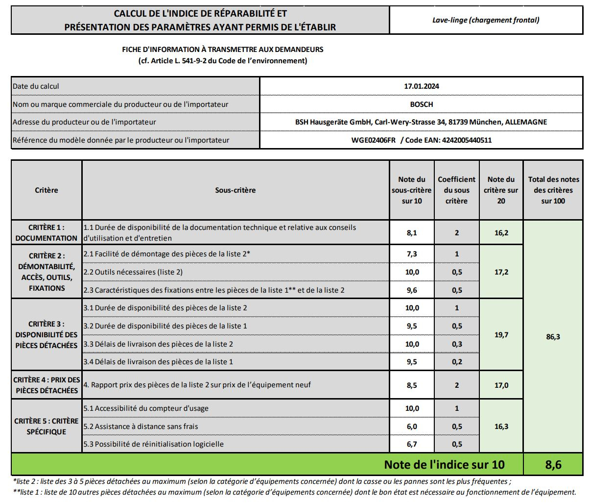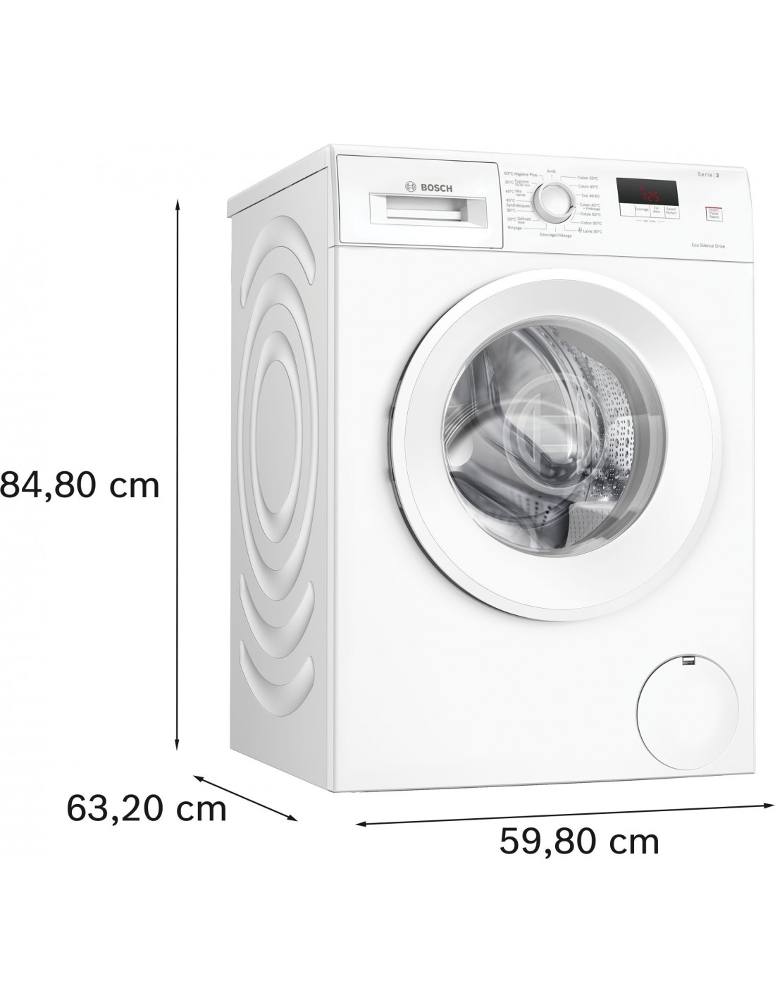 BOSCH - Lave-linge front pose-libre - SER2 - 7,0 kg - 1.400 Tr/min - Classe d’essorage B - Classe énergie A - Indice de réparabilité : 8,6 - 40 kWh pour 100 cycles Eco 40-60 / 44 l par cycle Eco 40-60 / Durée charge pleine 2h55 - Classe d’efficacité sonore A - 72 DB - Couleur hublot: Blanc - H: 84,80 cm x L: 59,80 cm x P (hors porte): 63,20 cm