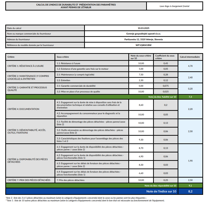 - Conso. énergie en lavage(KWh/100 Cycles)