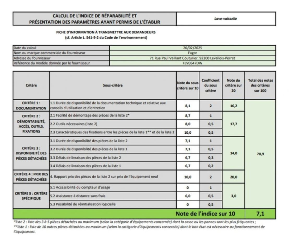 Fiche Produit QR Code (Fiche Produit) Calcul Indice Répar.